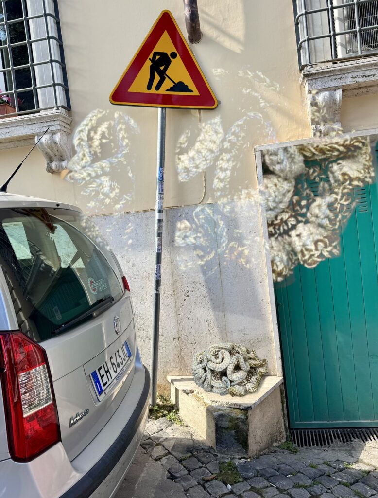 Am Abend saß ich über meiner Fotosammlung vom Tage und imaginierte sie mir in die gesehen Dinge und meine Erinnerungen hinein, denn ich frage mich schon seit einiger Zeit, wie gebaute Architektur und hyperboles Raummodell miteinander zu denken sind.